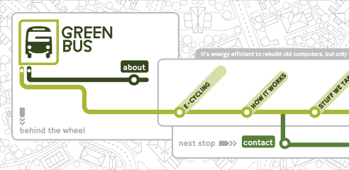 Playful identity for Green Bus, a programme for schools that facilitates the collection of e-waste from children.