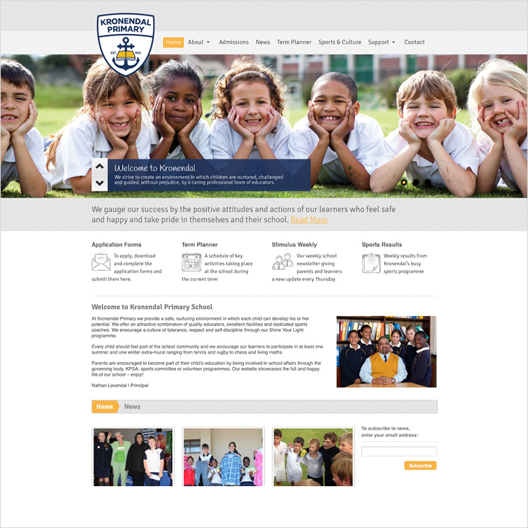 Website design for Kronendal Primary School, situated in Hout Bay, based on their new identity. www.kronendal.co.za.