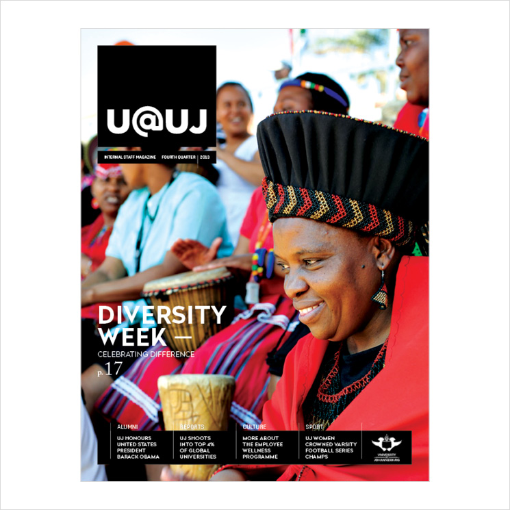 Identity and publication design of the University of Johannesburg's internal staff magazine, U@UJ. Full issue here.